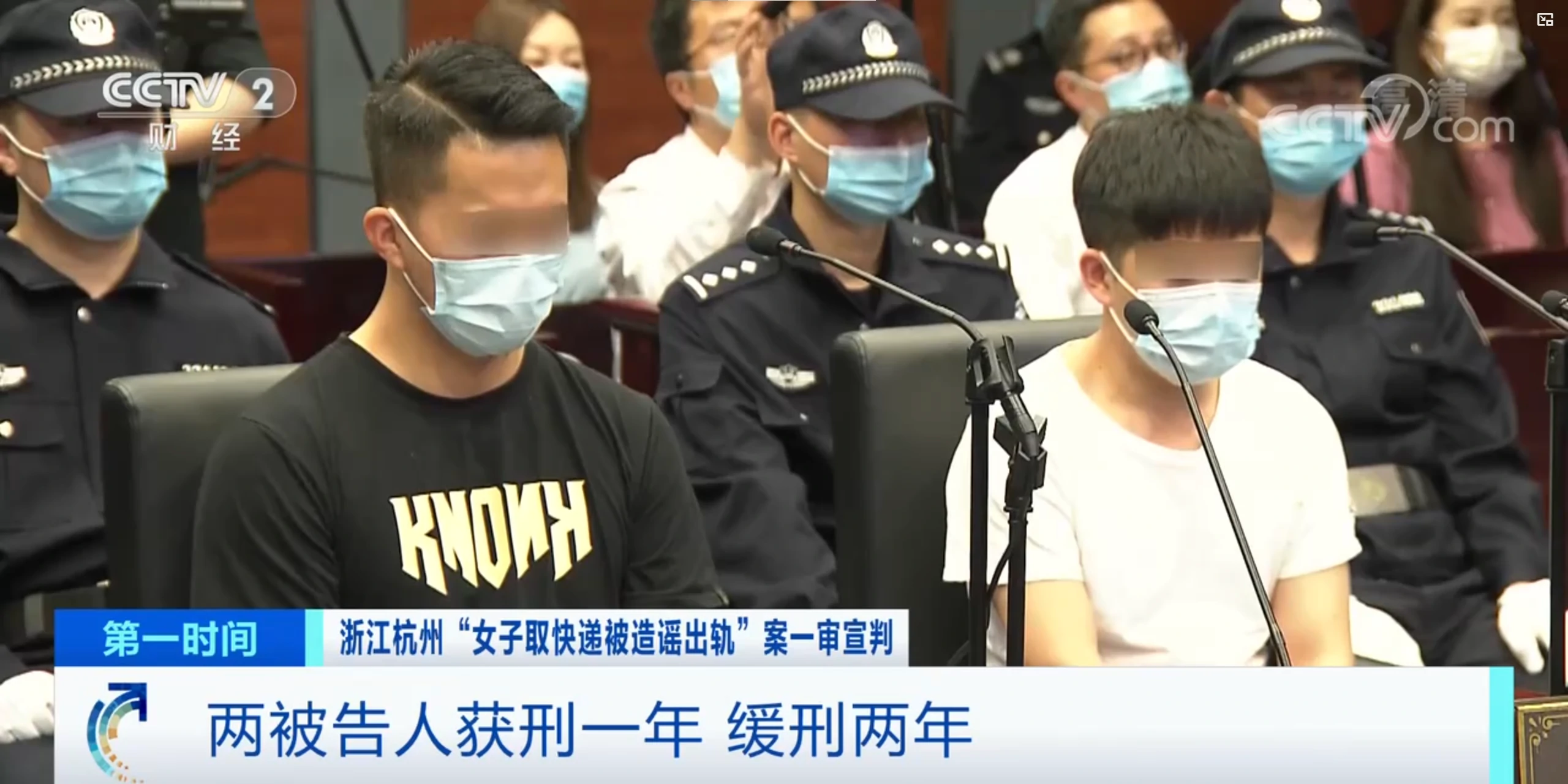 2020年7月,杭州女子吴妍取快递被便利店店主郎某偷拍视频并造谣“少妇出轨快递小哥”,郎某和何某被行政拘留,后吴妍提起刑事自诉。